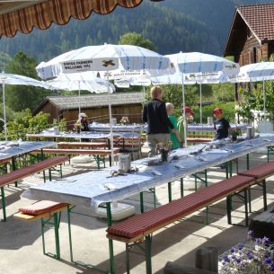 Das Bauernfrühstück findet mehrheitlich Draussen statt. Nebst den Köstlichkeiten auf dem Frühstücksbuffet ist auch die Aussicht ein Genuss.